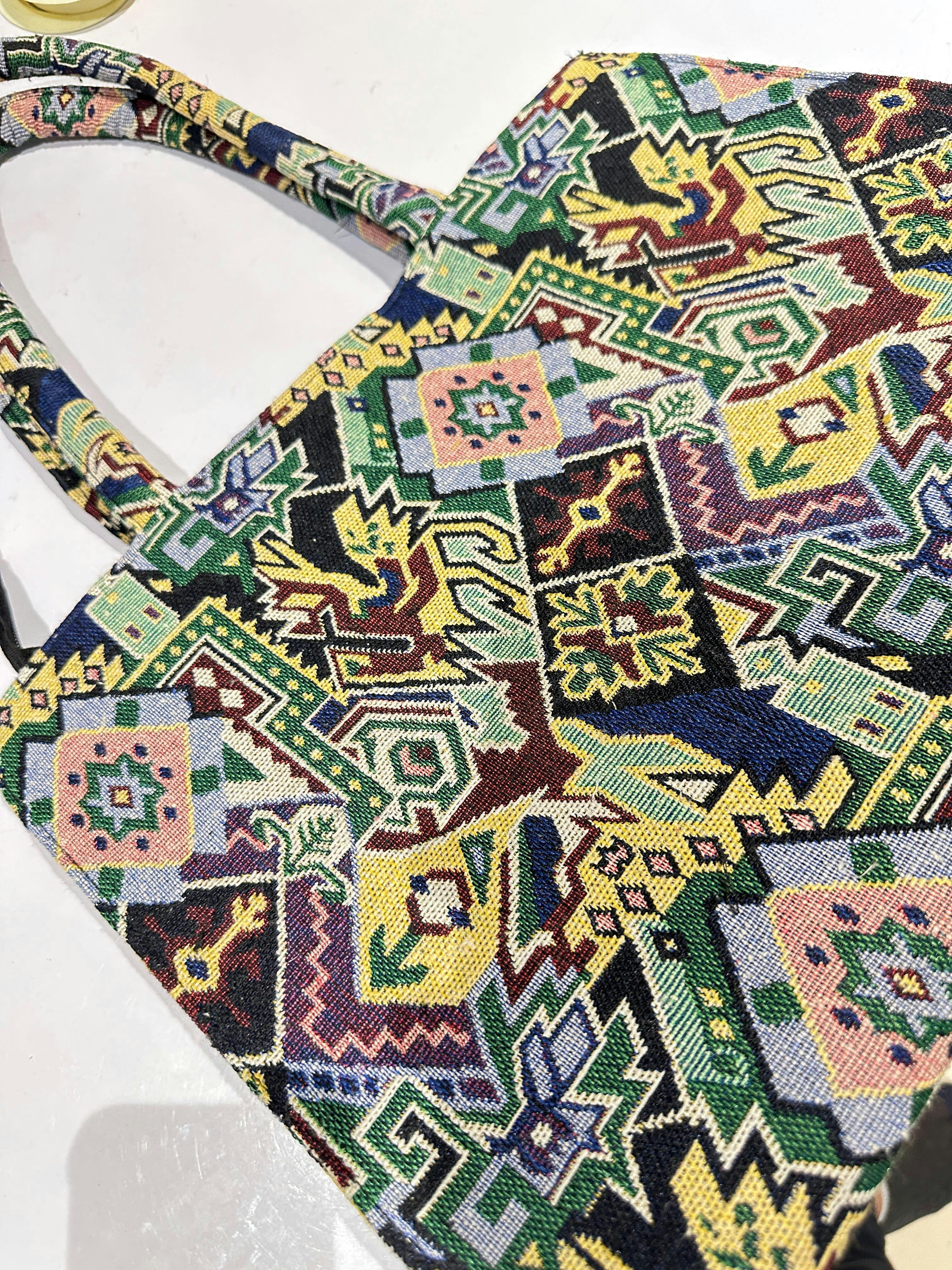Ethnic Jacquard Handbag with Traditional Geometric Pattern | vegosis
